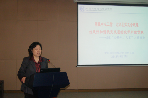 张德清副所长对院考核组的到来表示欢迎,感谢院工会对化学所工作的指导和支持。他说,化学所一直以来特别重视工会工作,积极支持工会自主开展活动,并取得了一定的成效。在此次验收考评中,化学所将全力配合院考核组工作,通过创建“合格职工之家”,开创工会工作新局面。