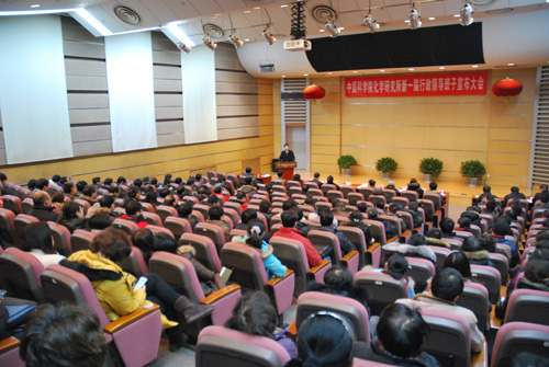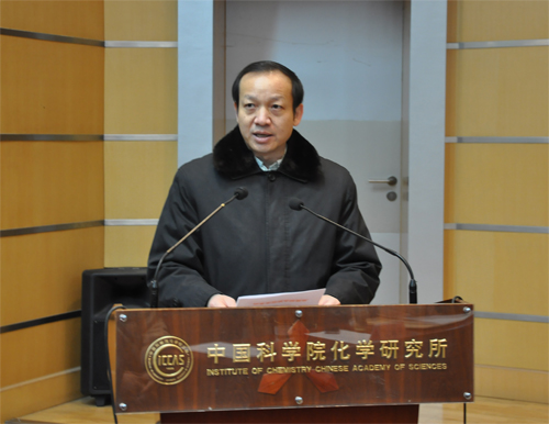 2013年1月4日上午,中国科学院詹文龙副院长带队到化学所宣布新一届所领导班子任职决定。人事教育局局长李和风,北京分院党组常务副书记、副院长马扬,人教局领导干部处副处长张放,北京分院干部工作处处长李浩然,化学所新老领导班子成员、院士、党委委员、纪委委员、中层管理人员、研究员、副高级专业技术人员、党支部书记和副书记以及各类职工代表近200人参加了会议。会议由北京分院党组常务副书记、副院长马扬主持。