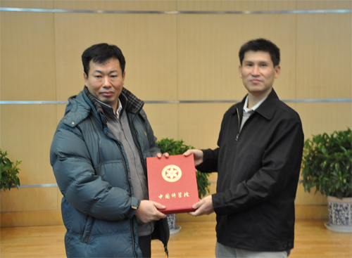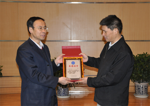詹文龙副院长为万立骏同志颁发荣誉证书