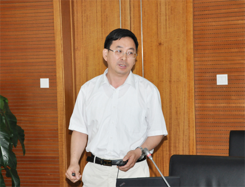 2013年8月5日上午,中国科学院副秘书长吴建国在院条财局基建办主任孔繁文、北京分院副院长欧龙新、行管局党委书记顾全、条财局投资处处长杨涛、基建办常务副主任袁伟、后勤保障处处长孙秀锦、科住物业公司总经理邹立民等的陪同下到化学所调研工作。化学所全体所领导、管理部门负责人陪同调研。党委书记王笃金主持座谈会。