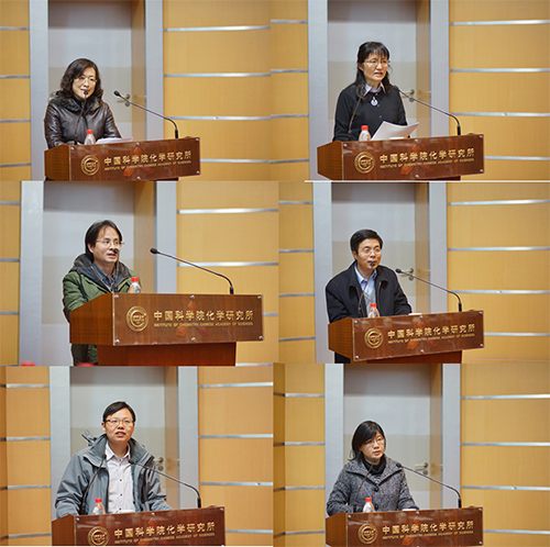 下午的大会由黄仁权副所长主持,他首先宣读了2014年度化学所集体和个人所获相关奖励。张德清所长、王笃金书记向荣获2014年度化学所精神文明先进单位的活体分析化学党支部、工程塑料党支部、光化学与胶体界面党支部颁发了流动红旗和荣誉证书;毛兰群副所长、杨国强副所长、范青华所长助理向获得精神文明表扬的分子动态学党支部、化学热力学党支部、绿色印刷党支部颁发荣誉证书。随后,六个讨论小组召集人代表在会上汇总交流了各组的讨论情况。