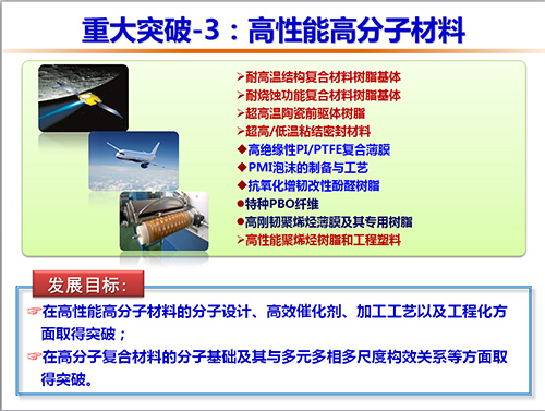 满足国家重大需求的耐高温聚酰亚胺树脂、高强韧环氧树脂、超高温陶瓷前驱体、超低密度酚醛空心微球/碳球、超高温/超低温弹性密封硅橡胶、超高温粘接剂、温控相变微胶囊等极端使役环境高分子材料系列产品实现应用,性能达到国际先进水平。
