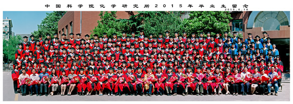典礼仪式结束后,全体毕业生和所领导、导师代表、职能部门负责人代表在化学所2号楼前集体合影留念。