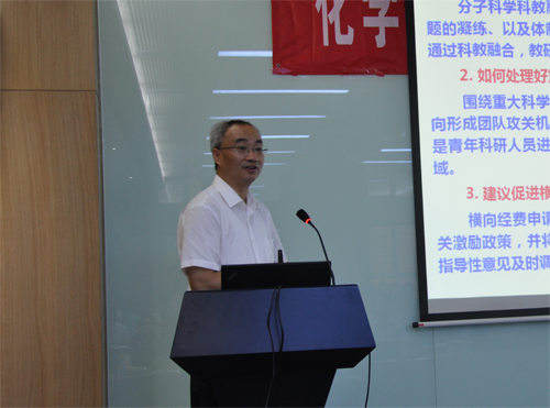 杨国强副所长介绍了化学所科教融合教育工作情况,包括本科生授课、研究生授课、化学所研究员承担教学任务等。