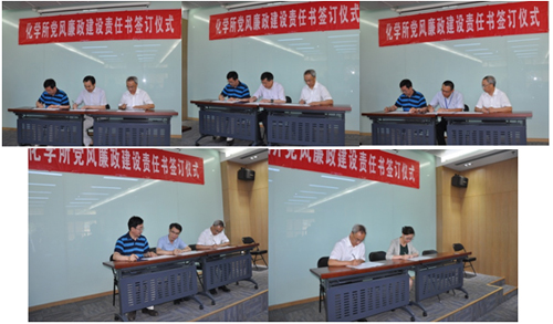 会上,还进行了化学所党风廉政建设责任书的签订仪式。张德清所长、王笃金书记分别与副所长、室主任,分管所领导分别与职能部门负责人在《化学所党风廉政建设责任书》上签字。