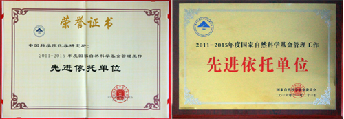 化学所荣获“2011-2015年度国家自然科学基金管理工作先进依托单位”称号。