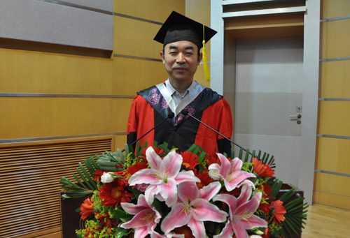 毕业生家属代表陈爱苹女士表示很高兴能够参加爱人的毕业典礼,她代表毕业生家属向全体毕业生致以最诚挚的祝贺,并对化学所领导、老师的言传身教和悉心关怀表示衷心的感谢,同时表达了对毕业生们的殷切期望,希望他们保重身体、再接再厉,在以后的事业中取得更加辉煌的成绩。
