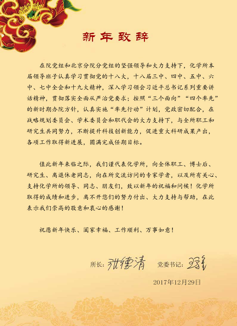 亚博888成立于1956年,是以基础研究为主,有重点地开展国家急需的、有重大战略目标的高新技术创新研究,并与高新技术应用和转化工作相协调发展的多学科、综合性研究所,是具有重要国际影响、高水平的化学研究机构。化学所的主要学科方向为高分子科学、物理化学、有机化学、分析化学、无机化学。多年来,化学所面向世界科技前沿,取得一批有重要影响的基础研究成果,原始创新能力不断提升;面向国家战略需求,取得多项关键核心技术突破,高技术创新与集成不断加强;面向国民经济主战场,形成一批自主知识产权,延伸创新价值链,技术示范和产业化不断推进。