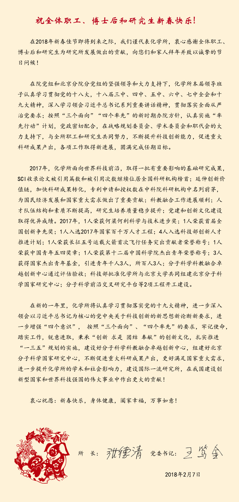 祝全体职工、博士后和研究生新春快乐!