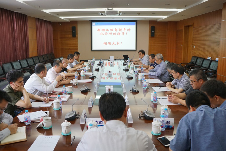 座谈上,王笃金汇报了化学所的基本情况,重点介绍了化学所优势学科领域和近年来的重大成果,希望在工信部的大力支持下,充分发挥基础研究优势,为国民经济建设做出国立研究机构更大的贡献。