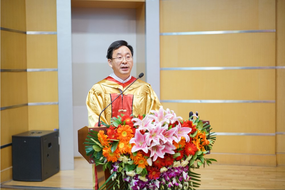 之后,万立骏院士在一片热烈的掌声中走上讲台致辞,他首先祝贺所有的毕业生经过自己的辛勤劳动,今天终于修成正果,获得学位,可喜可贺。紧接着,他结合自身的求学经历,勉励毕业生要勇做追梦人,在坚持追梦的过程中一定要有“三心”:自信心、专心、平常心,“两道”:孝道、走正道。最后,万立骏院士祝愿全体毕业生无论身在何处、身就何业、身居何职,都有精彩的人生。