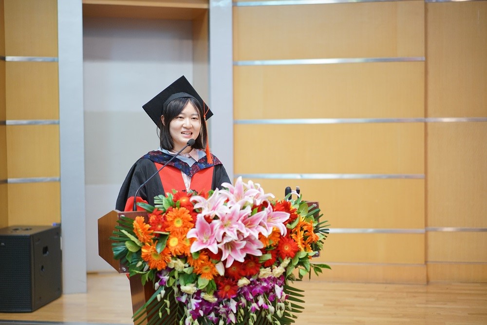 毕业生代表郎双雁发言