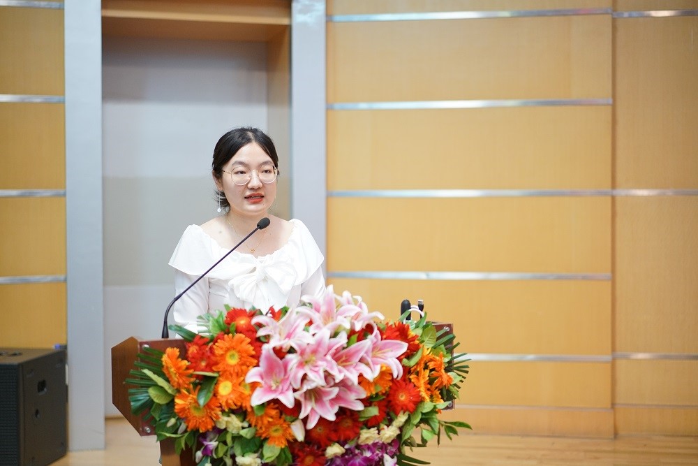 分子纳米结构与纳米技术实验室郎双雁同学作为毕业生代表发言,她首先表达了对老师、同学以及化学所一草一木的不舍,代表全体毕业生向各位师长、家人和同窗好友表达最诚挚的感谢,回顾了自己在化学所这个温暖大家庭里度过的青春岁月,并立志会沿着化学所先辈的足迹,传承化学所人的精神,躬行实践,勇往直前,为祖国化学事业发展尽一份力,用出色的成绩回报化学所和各位老师的培养。最后,她祝愿化学所事业蓬勃发展,不断创造新的辉煌!