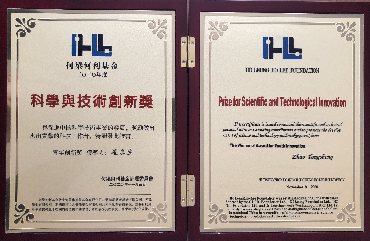 化学所赵永生研究员荣获2020年度何梁何利基金科学与技术创新奖。