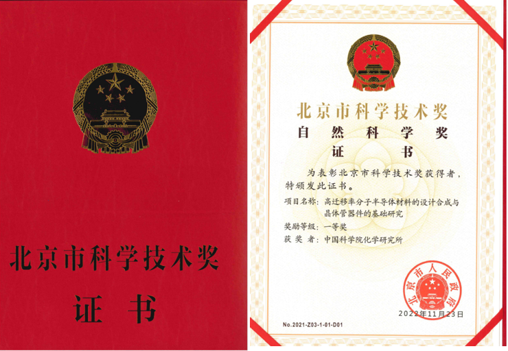 “高迁移率分子半导体材料的设计合成与晶体管器件的基础研究”科研成果荣获2021年度北京市科学技术一等奖