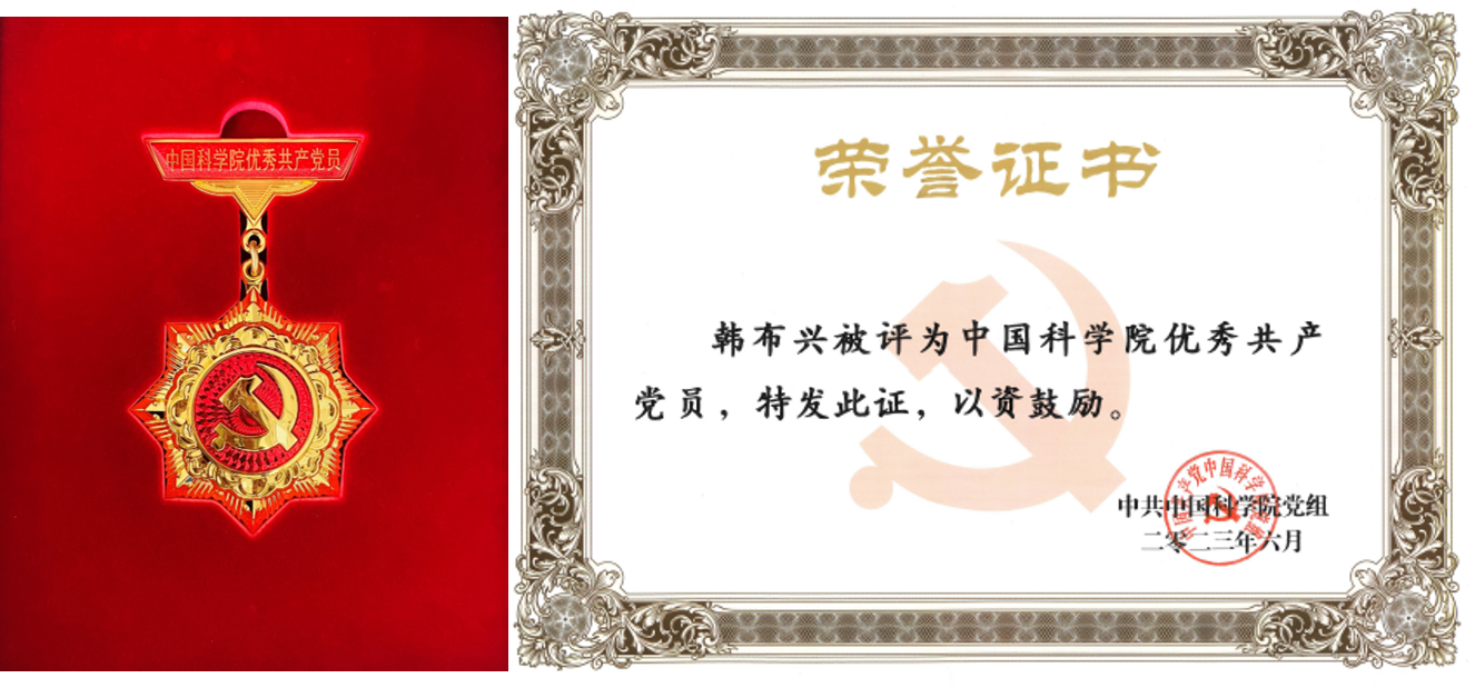 化学所韩布兴同志荣获“中国科学院优秀共产党员”荣誉称号。