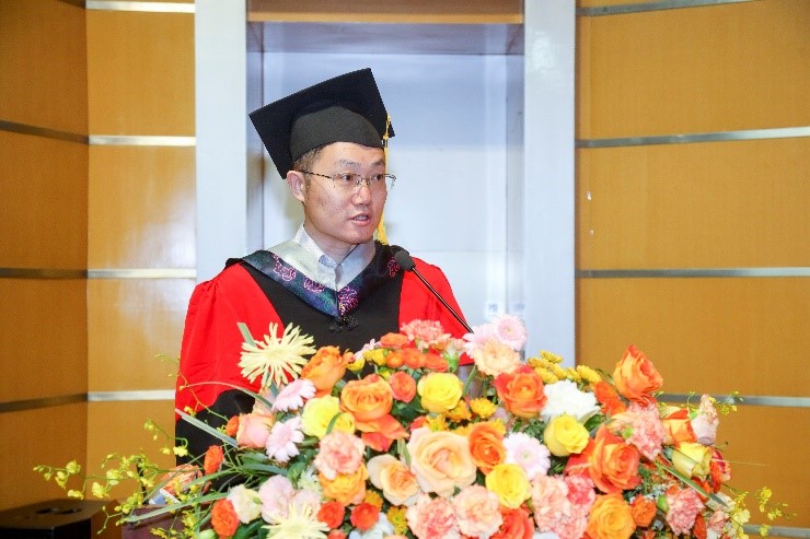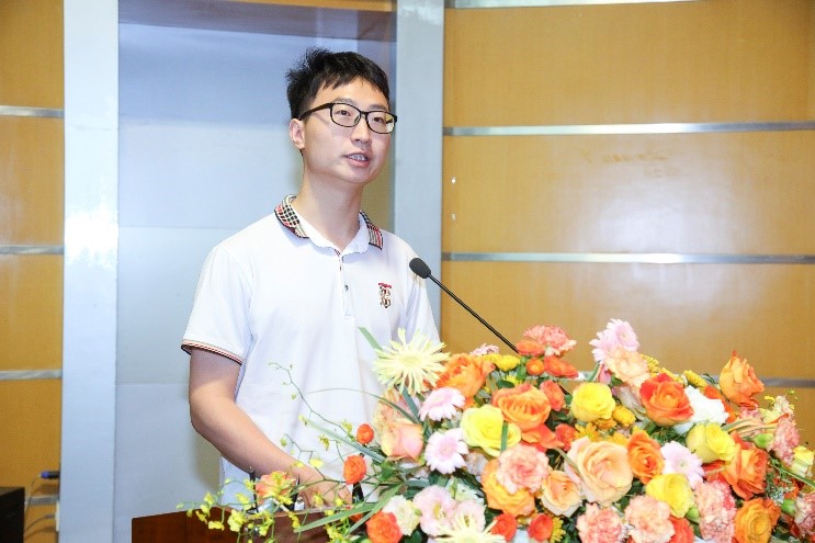 光化学实验室贾通通同学作为在学研究生代表发言,他首先向顺利完成学业的毕业生们表达了最热烈的祝贺。接下来他回顾了与师兄师姐“相爱相杀”的点点滴滴,对他们一直以来的关心、爱护、帮助和支持表示衷心的感谢!最后,祝愿各位毕业生在新的工作岗位上再创佳绩。