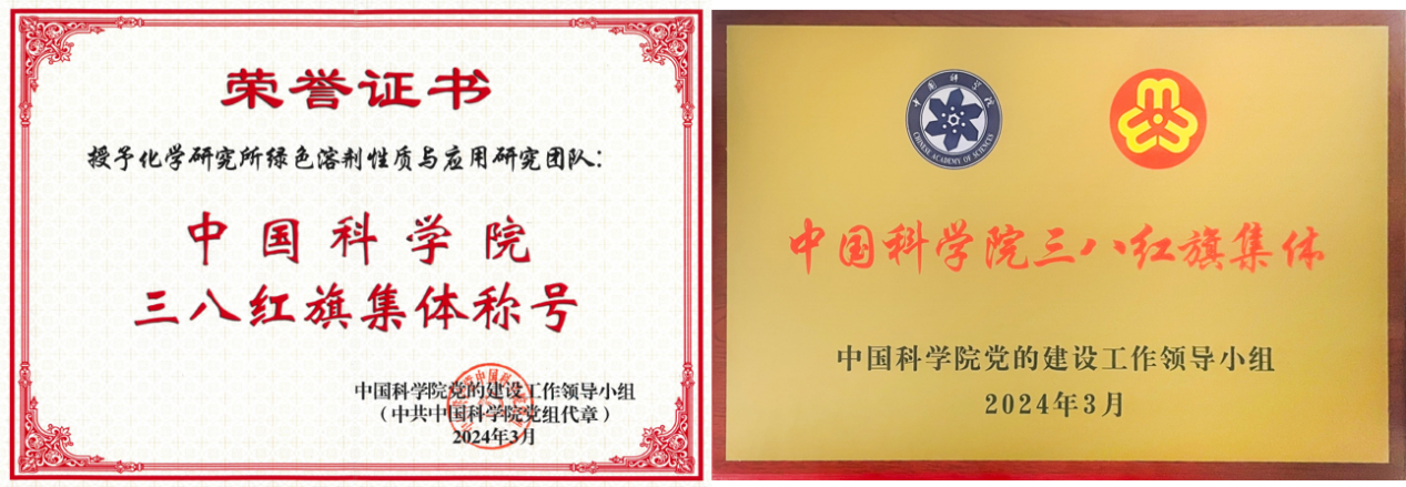 化学所绿色溶剂性质与应用研究团队获评第二届中国科学院三八红旗集体