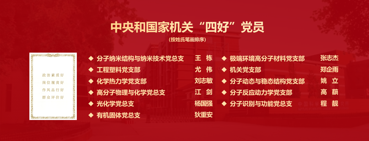 近年来,化学所党委坚持以习近平新时代中国特色社会主义思想为指导,持续创建“政治功能强、支部班子强、党员队伍强、作用发挥强”的“四强”党支部,引导广大党员争做政治素质好、岗位履责好、作风品行好、群众评价好的“四好”党员,截至目前化学所共有8个中央和国家机关“四强”党支部和21名中央和国家机关“四好”党员。