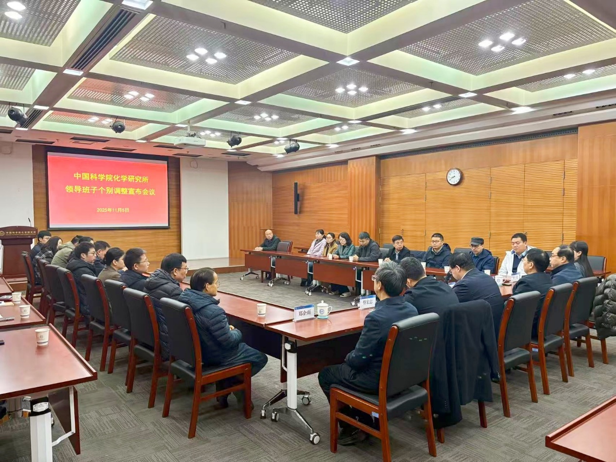 2025年11月5日,化学所召开领导班子个别调整宣布会议。中国科学院人事局副局长蔡宏志、领导干部二处处长宋琦,化学所领导班子成员、党委委员、纪委委员、实验室和职能部门负责人等20余人出席会议,范青华书记主持会议。