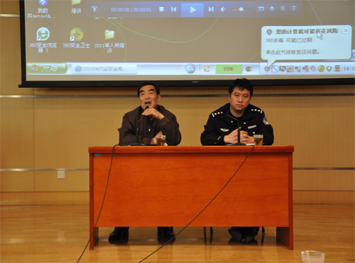 在25日下午的培训中,中关村派出所张勇副所长也应邀为大家介绍了地区治安形势,并向大家介绍了如何增强安全防范意识,提高自我保护能力。海淀公安分局治安支队秦枝全警官介绍了剧毒化学品采购、运输、保管、领取、使用的管理法规和要求。综合处安全保卫主管周利民讲授了消防安全常识,并组织新进所人员签订了《安全承诺书》,随后进行了连接消防水带和手提式灭火器扑救明火的消防演练。