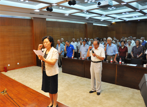大会还通过了明滋荣同志成为中共预备党员的决议,在入党宣誓环节,化学所原党委书记杨淑霞带领离退休党支部全体党员重新宣读《入党誓词》,现场气氛庄严热烈。随后,离退休党支部副书记李福家向大家传达了中科院离退休干部工作局关于转发中组部《关于在离退休干部中开展“同心共筑中国梦”活动的通知》精神,结合此项工作,布置了下半年离退休党支部重点工作。