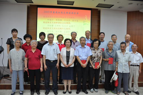 最后,会议进行了向获得离退休党支部政治理论学习先锋奖、安度晚年先锋奖、和谐社会先锋奖、学习科学发展观优秀奖的老党员们颁发奖状仪式,大会在热烈的掌声中圆满结束。
