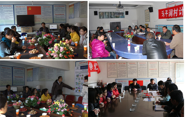 结束养殖场的参观后,支部全体人员分成五组,每组由支部委员带领,分别前往流村镇下辖的长峪城、黄土洼、马刨泉、禾子涧及老峪城五个贫困村庄进行走访交流。在分组交流中,所在村党支部记分别介绍了本村人口组成及分布、农作物种植情况、人均收入等情况。流村镇地处太行山与燕山交汇处,耕地面积较少,各村根据地域特点着重发展了林果业,如通过种植柿子、核桃、杏、苹果等来提高当地农民的收入。同时,流村镇在市区两级政府的帮助下,正逐渐完善道路交通,开发农家乐、黄花坡等旅游产业,进一步为农民创收。当地村支部的工作情况介绍给支部的党员们留下了深刻印象,不大的会议室里挂满了支部工作条例与规章制度,每位党员的基本情况与一句话承诺也都张贴在墙上,让每位到这里的人都能感觉到共产党员身上肩负的责任与义务。各村支部书记还特别讲述了果林种植中遇到的一些问题和困扰,如核桃霉菌病、杏仁蜂等,希望到来的科研人员能针对这些问题给出建议。