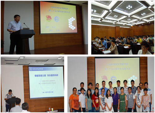 2015年7月16日,化学所第二十五次研究生代表大会在5号楼100报告厅召开,化学所杨国强副所长、研究生办公室孟丽萍主任出席会议,来自各团支部的70余名青年职工及学生代表参加会议。