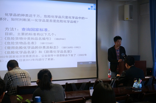安全培训会由实验室副主任、实验室安全组长王春儒研究员主持,他首先强调了实验室安全的重要性,并介绍了安全培训的内容。随后,综合处安全主管张昌松作了《化学实验室安全》报告,详细介绍了化学品的安全、电气安全、化学实验中安全注意事项,突发火情、化学品泄漏等险情的处理,并通报了近年来所内发生的险情。实验室行政秘书朱明洁介绍了实验室的各项安全管理规定、实验室安全小组构成,通报了实验室历年发生的险情和安全注意事项。最后,各课题组的安全员分别根据各自实验室的特点,有针对性的介绍了实验室及实验过程中须注意的安全问题,并对同学们提出的问题进行了认真解答。