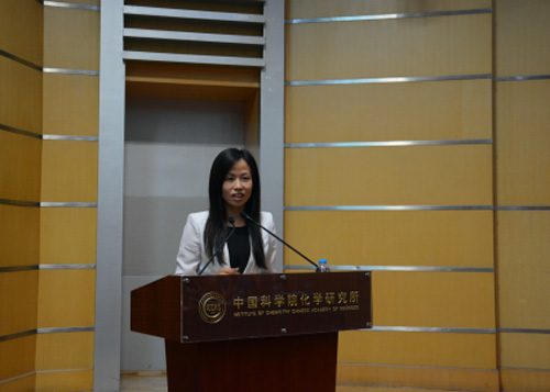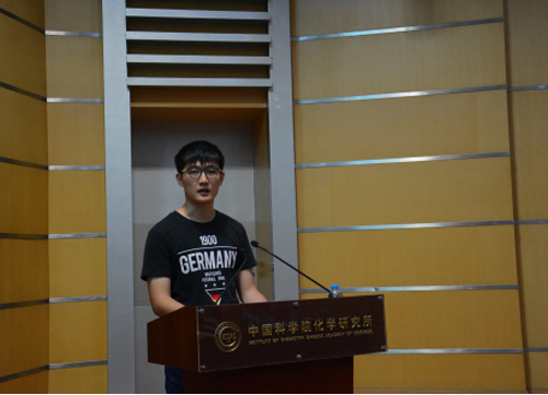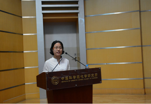 研究生会主席,胶体、界面与化学热力学实验室2013级硕博连读研究生付梅芳代表全体在学研究生发言,和各位新生分享了自己在化学所学习、科研等方面的经历。她勉励大家要有足够的勇气冲破科研道路上的荆棘,勇敢面对工作和生活中的每一个困难,最终将体会到柳暗花明的喜悦。