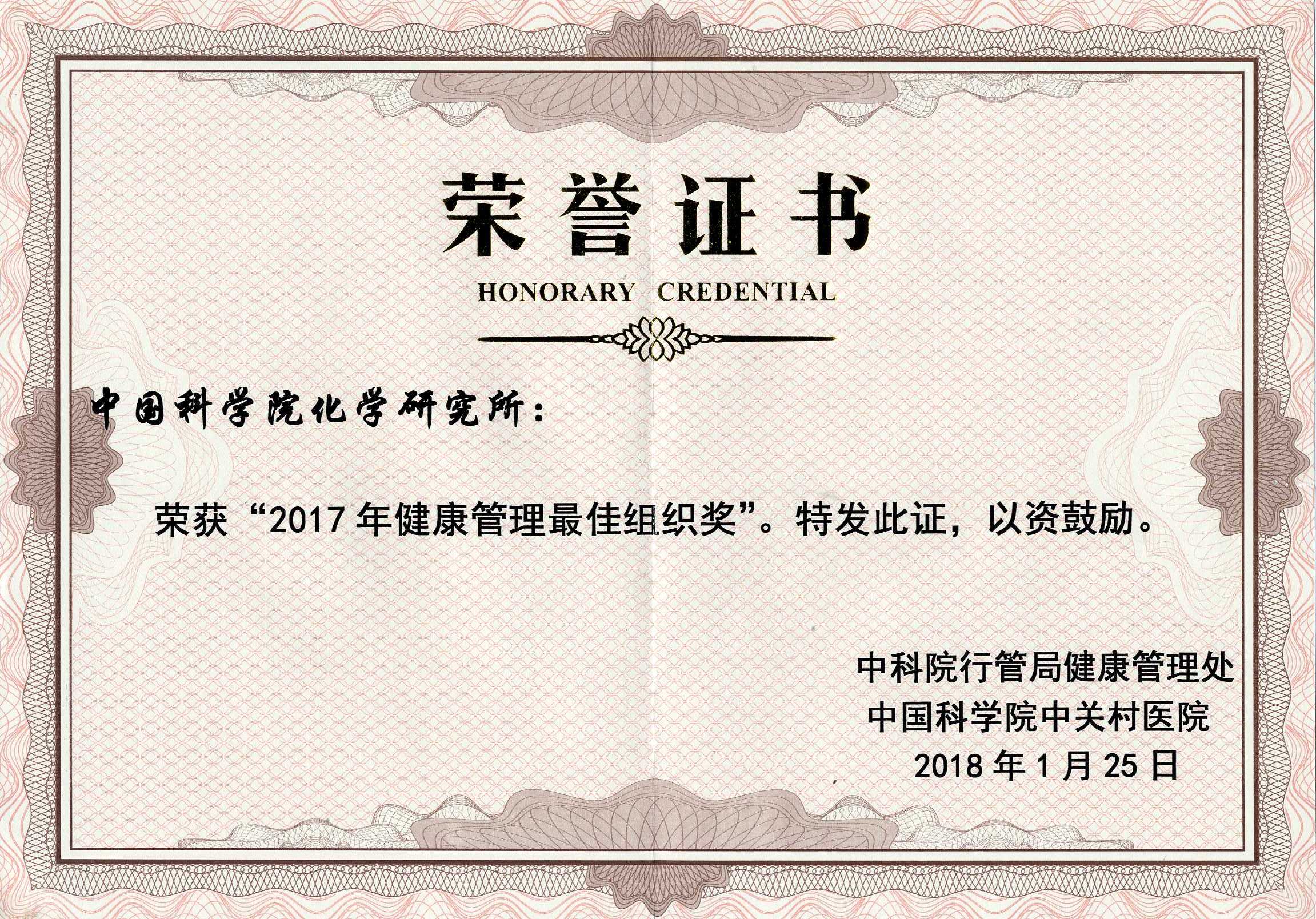 化学所在此项工作中表现突出,荣获2017年健康管理最佳组织奖。
