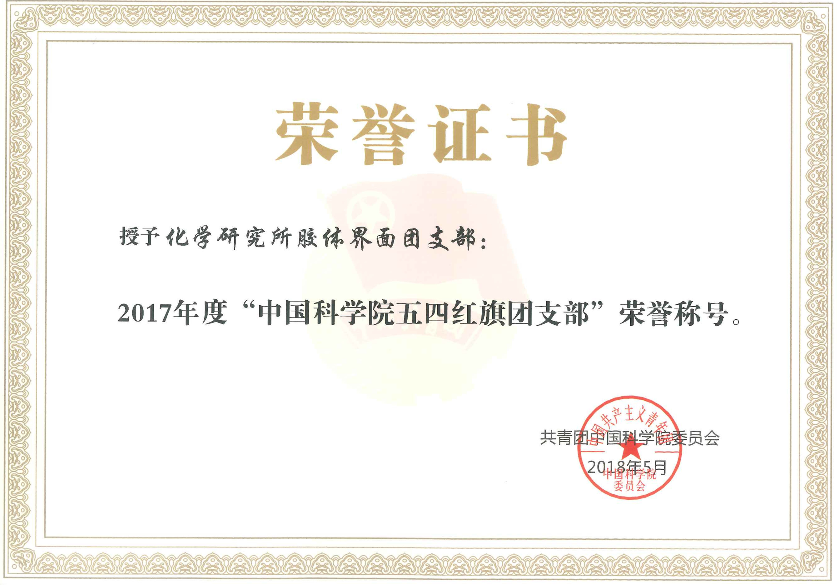 其中化学所团委荣获“ 中国科学院五四红旗团委”,胶体界面团支部荣获“中国科学院五四红旗团支部”,孙晓丹同志荣获“中国科学院优秀共青团员”。