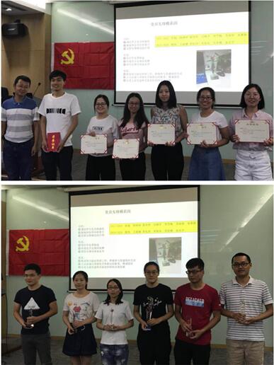 最后,支部委员徐西玲同志主持完成了党员先锋模范岗的换选工作。为奖励上一届党员先锋岗同志对支部工作的大力支持,党支部书记姚立同志和副书记白羽同志为他们颁发了荣誉证书。会上宣布了支部新一届党员先锋岗同志,并为他们颁发了先锋岗流动奖杯,希望新任的先锋岗党员同志们能积极参与支部组织生活的同时主动加强与周围党员和群众的联系,为促进支部党建和实验室科研的全面发展做出贡献。