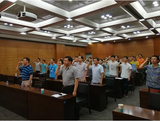 报告会结束后,有机固体党支部召开支部大会,开展了“不忘初心,重温入党誓词”主题党日活动,党支部书记王树同志对支部开展“双融双聚”主题实践活动进行了部署。随后,在党支部副书记李诚同志的领誓下,全体党员面对党旗,庄严地重温了入党誓词。王树在总结发言中号召大家通过回顾自己的入党历程,对照党章要求,紧密联系个人思想和工作实际,并牢记党员使命,不忘入党初心,努力工作,为新时代实现科技强国的历史使命贡献自己的一份力量。