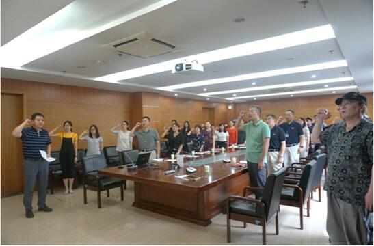 最后,机关支部全体党员面对党旗,庄严地重温了入党誓词。