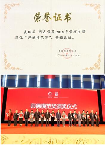 化学所教育处孟丽萍处长荣获中国科学院大学“师德模范”奖