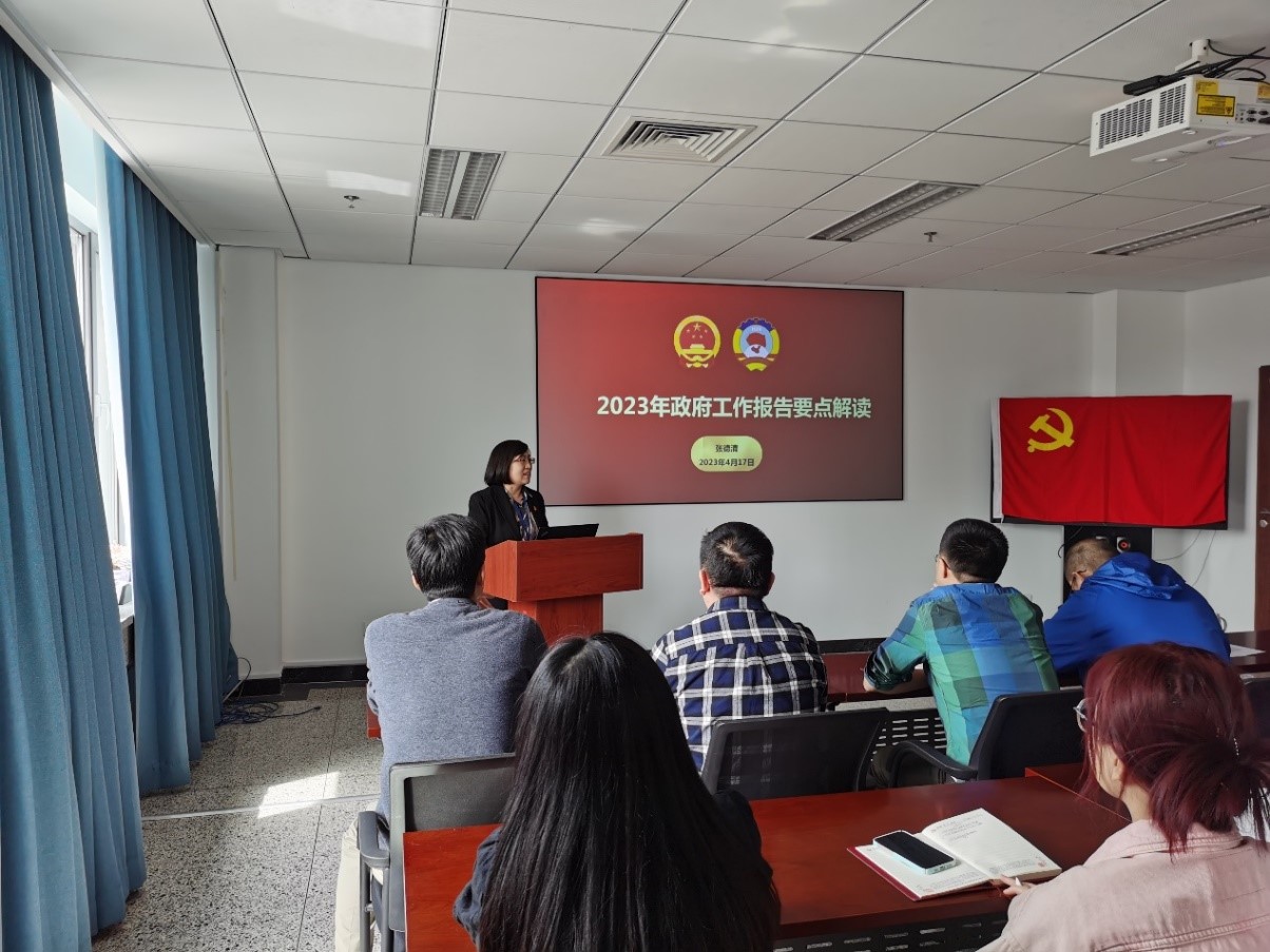 张德清首先从“过去一年和五年回顾”以及“对今年政府工作的建议”两方面,深入解读了2023年政府工作报告。2022年在我国经济发展面临困难挑战情况下,以习近平同志为核心的党中央团结带领全国各族人民攻坚克难,稳住了经济大盘,在高效统筹疫情防控的同时,实现了经济平稳运行、发展质量稳步提升、社会大局保持稳定,基本完成全年发展的主要目标任务。报告回顾了过去五年,在以习近平同志为核心的党中央坚强领导下,中国经受了世界变局加快演变、新冠疫情冲击、国内经济下行等多重考验,如期打赢脱贫攻坚战,如期全面建成小康社会,实现第一个百年奋斗目标,开启向第二个百年奋斗目标进军新征程。随后,他带领大家学习了习近平总书记在参加江苏代表团审议时的讲话和在二十届一中全会上的讲话,强调高质量发展是全面建设社会主义现代化国家的首要任务,加快实现高水平科技自立自强,是推动高质量发展的必由之路。他最后对大家提出要求,作为国家战略科技力量的一份子,在今后的工作中要以增强科技创新引领作用为奋斗目标,在加强关键核心技术攻关中发挥作用。