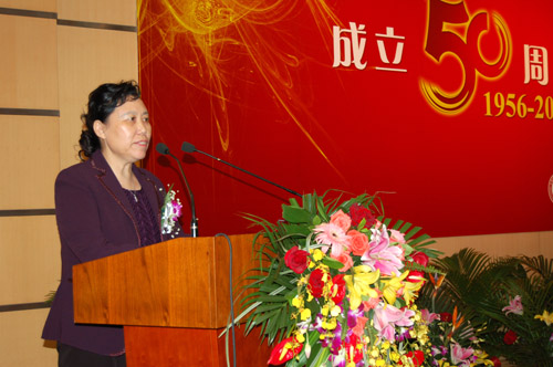 化学所所长万立骏在大会上讲话,他首先从化学所的筹建、学科发展、50年来在科研、人才培养及科研成果等方面所做的突出成绩等方面回顾了化学所50年的发展历程。万所长最后深情地说到,化学所的历史是那些曾经、现在在化学所工作、学习的人、所有关心支持化学所发展的人共同创造的;化学所的成就、化学所的影响和声誉,是化学所几代人的青春和智慧、心血和汗水、努力和创造共同铸就的。所庆是一个节日,欢歌笑语,张灯结彩;所庆也是一次展览,检阅成就,放飞理想;所庆还是一次聚会,盛满回忆,飘散酒香。所庆更是里程碑,历史翻开了新的一页,从今天开始,化学所将要面向新的目标,将要去创造更加伟大的辉煌。