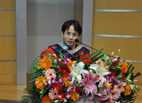 最后,在同学们热烈的掌声中,张德清所长发表了热情洋溢的讲话。他首先对圆满完成学业的2013届全体毕业生表示衷心的祝贺,对关注着化学所发展、关爱同学们成长的亲朋好友和社会各界人士表示诚挚的感谢。张所长和大家一起回顾了化学所近年来在基础研究和高技术研究领域取得的一系列骄人成绩,感谢毕业生们对化学所发展所做出的重大贡献,并寄望莘莘学子:要永远保持一颗进取之心,勤于学习,不畏困难,勇攀高峰;要时刻坚守一份责任之心,甘于奉献,志存高远,报效祖国;要时刻怀抱一颗求实之心,脚踏实地,作风沉稳,工作务实;要能够持久拥有一颗感恩之心,积极乐观,热爱生活,宽容自信。张所长最后对毕业生说,化学所永远都是你们坚强的依靠、温暖的家园,希望你们常回家看看,并祝愿全体毕业生前程似锦、捷报频传!