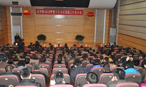 2014年3月7日,化学所召开2014年度工作会议暨职工代表大会,所领导、院士、副高级职务以上科研和技术支撑人员、管理部门全体人员、党支部正副书记、职工代表大会代表、分工会主席、博士后代表、团委委员和研究生会委员共200余人参加了大会。王笃金书记主持会议。