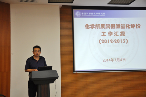 反腐倡廉量化考评由量化评分和民主测评两部分工作组成。民主测评会议上袁东副局长首先介绍了反腐倡廉量化评价工作的背景、要求和程序,随后化学所王笃金书记对2012-2013年化学所反腐倡廉工作的情况进行了汇报,从化学所概况、廉洁从业风险防控、内部审计监督工作、作风建设监督检查、惩防体系基础工作及今后努力方向六个部分介绍了化学所的具体工作。会议最后进行了研究所反腐倡廉工作民主测评及现场检查评估。
