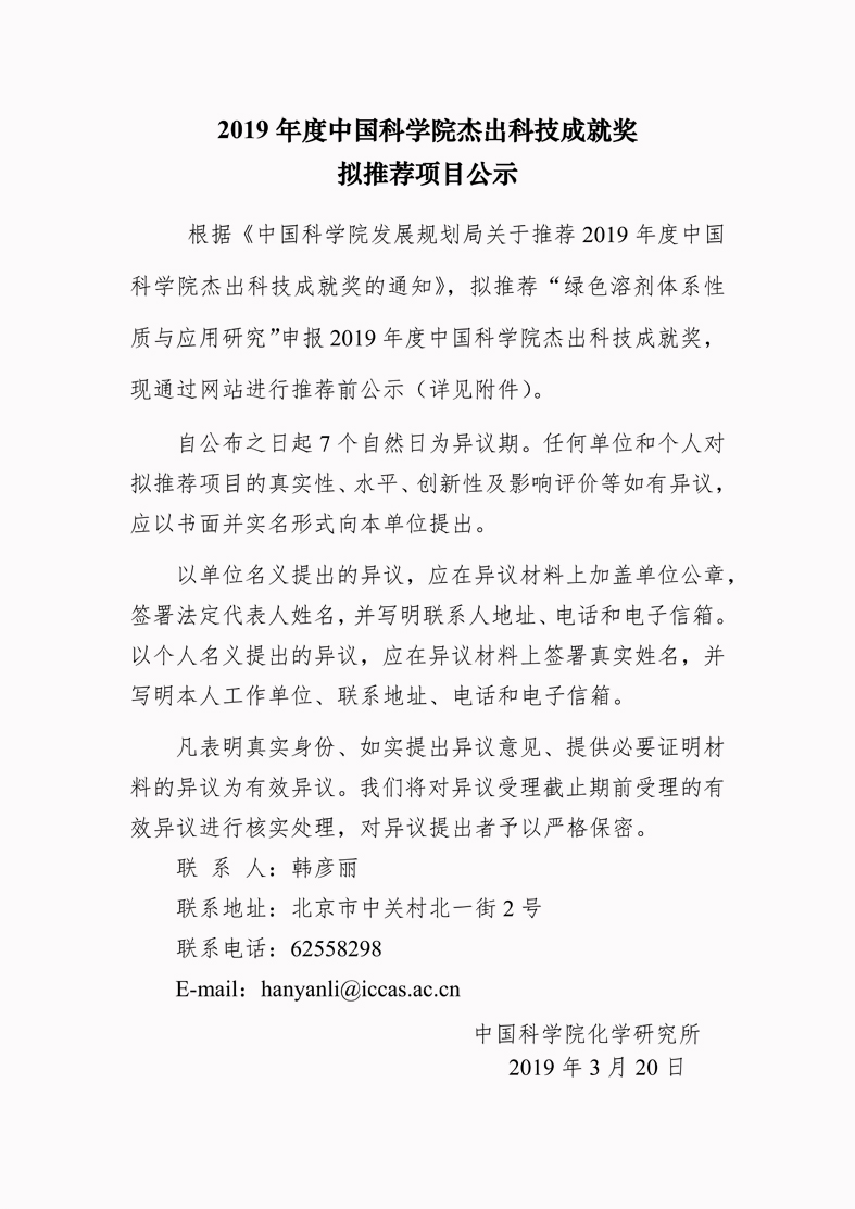 化学所关于对2020年第一批国家研究中心博士后项目拟资助人员名单进行公示的通知