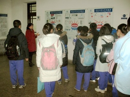 2010年3月19日,中关村中学约40余名师生来化学所参观。由于参观的学生还没有接触过化学,为了让他们对化学有一个初步的认识,科技处几位老师带领同学们参观了化学所展室、质谱中心、活体分析化学实验室。老师们通过生动的故事和现实生活中的案例让同学们对化学有了较全面和深入的了解,提高了他们对各种化学大型仪器的认知能力,加深了他们对化学研究的兴趣。