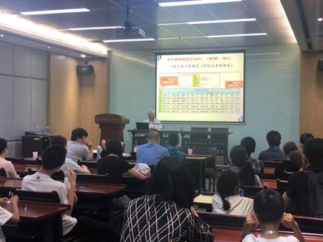 接下来的报告会由范青华副所长主持。分子识别与功能院重点实验室王德先研究员以“元素周期表史话”为题作报告,从1869年门捷列夫发表的第一张元素周期表,到几经修订的几版元素周期表,再到最新最全的由118个元素组成的化学元素周期表,向公众娓娓道来元素周期表的发展史。报告后她和观众进行了互动回答,现场气氛十分热烈。接着,来自有机固体院重点实验室的武斌研究员,以“浪潮之巅:从碳、碳基生命到石墨烯”为题,给公众讲述了碳元素及其对生命对科学的重大意义。