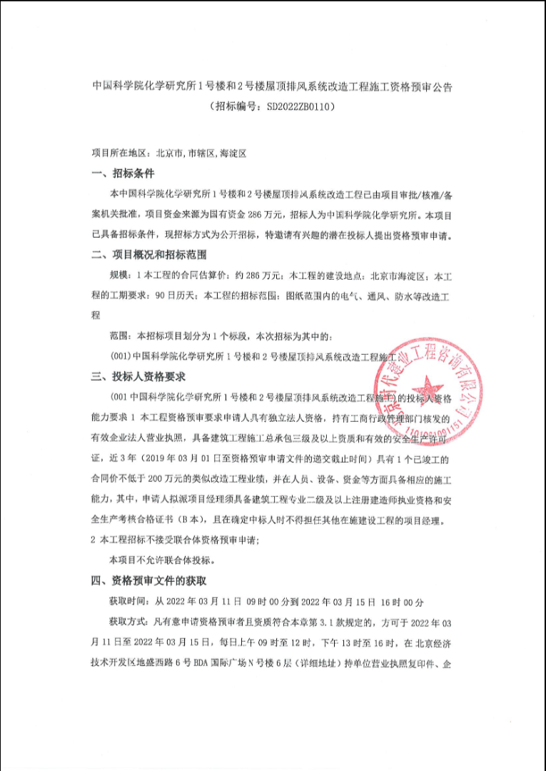 亚博8881号楼和2号楼屋顶排风系统改造工程(招标公告、中标公告)