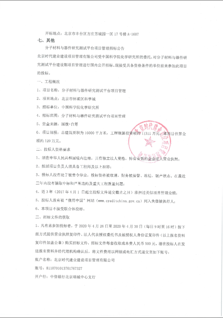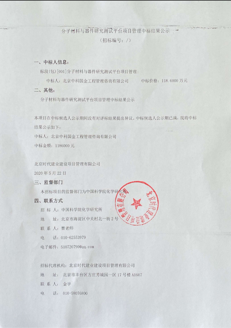 分子材料与器件研究测试平台项目管理(招标公告、中标公告)