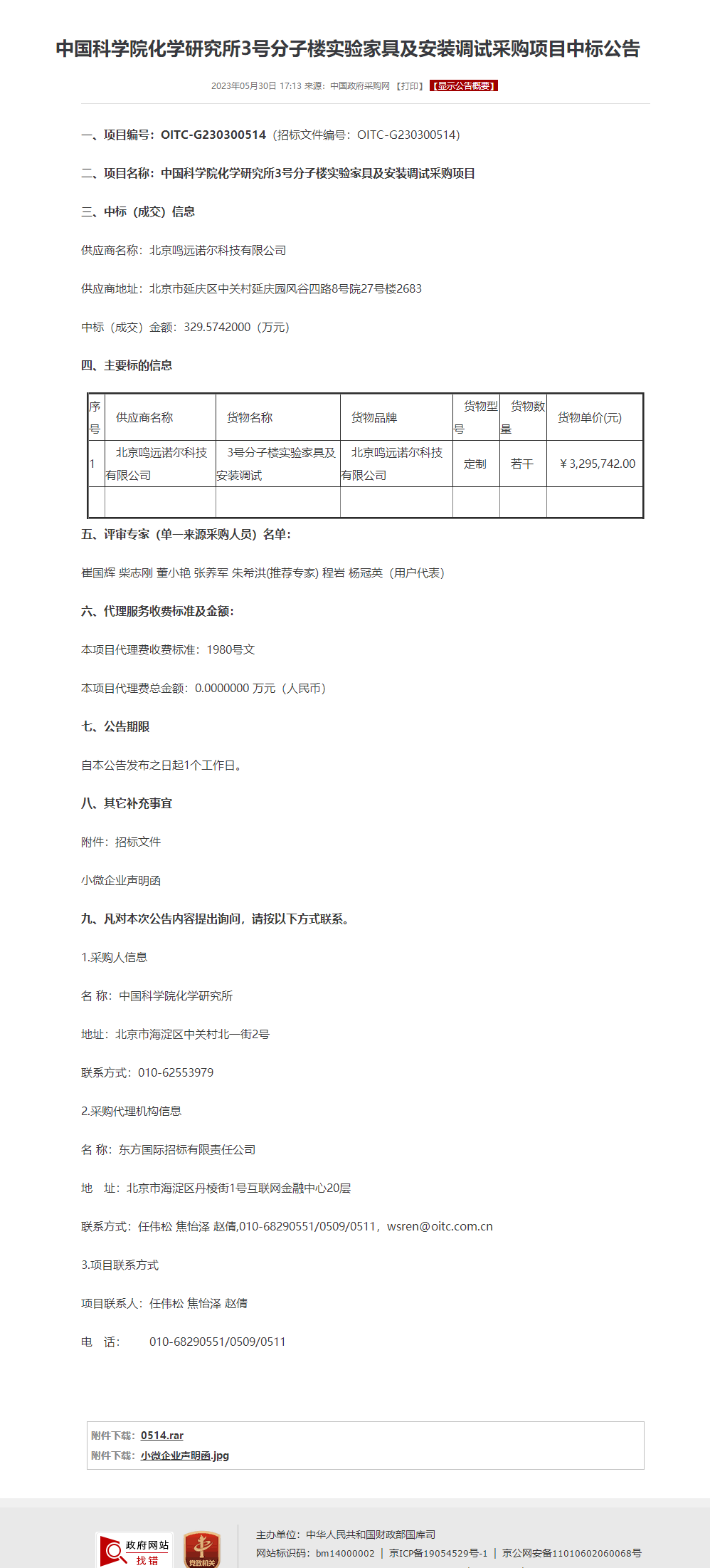 亚博8883号分子楼实验家具及安装调试采购项目(招标公告、中标公告)