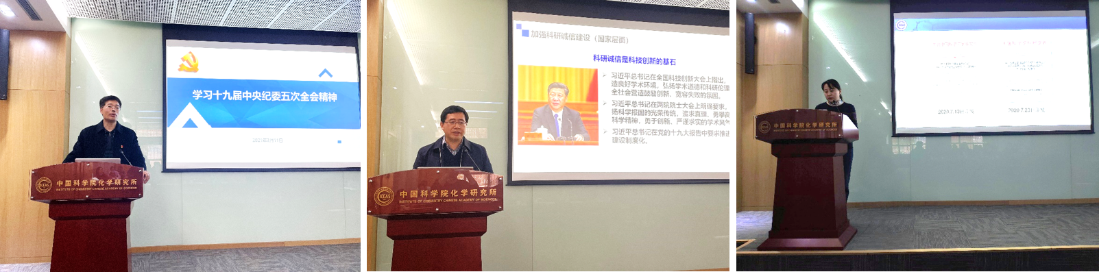 首先,石永军通报了关于调整纪委委员工作分工的通知,集中传达学习了中科院警示教育会和院工作会议相关精神,带领大家一起学习了十九届中央纪委五次全会精神。纪委委员王树副所长通报了关于2018年以来查处的中国科学院党员干部违纪违法典型案例和党的十九大以来发现的套取科研经费有关情况,并作科研诚信建设报告;纪委副书记李静介绍了纪监审工作的相关情况,通报了内审和巡视发现的典型问题,解读了中国科学院纪检工作暂行办法等。
