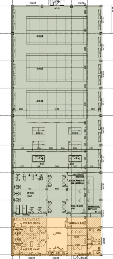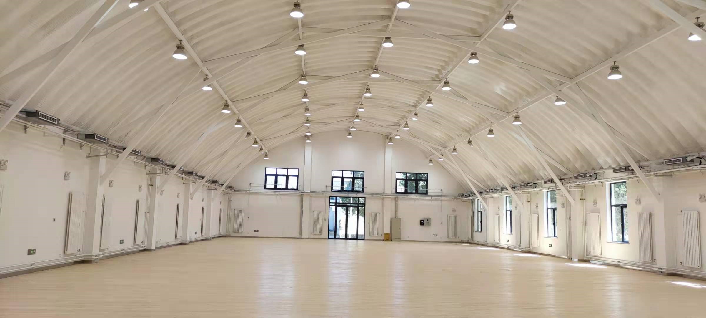 昌平中试基地文体中心由原昌平基地的西大库改造而成,按照健身场地标准进行设计施工,地面采用专用运动地板,新增空调系统、照明系统、内外保温等,并进行了结构加固。设有3块羽毛球场地、4个兵乓球台、2个桌球、70平方米舞蹈区、70平方米器械区等,另设置了水吧、男女更衣室、储藏间、卫生间等。